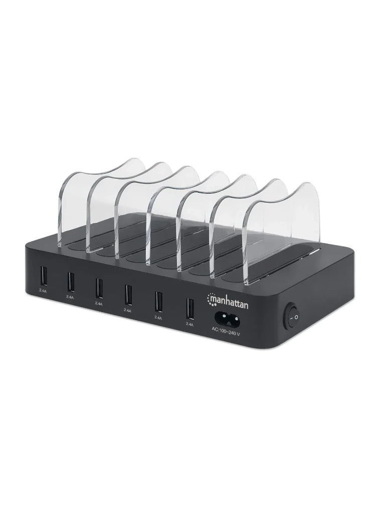 MANHATTAN - 102254 - Estación de carga con 6 puertos USB / Seis puertos USB-A, hasta 5 V / 2.4 A por puerto, 50 W de salida en total, negro