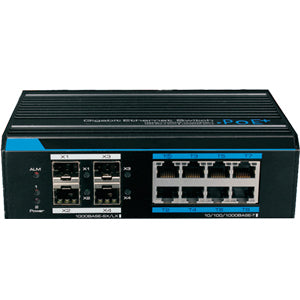 Switch industrial Gigabit PoE administrable / L2 / 8 Puertos PoE Gigabit / 4 Puertos SFP Gigabit / 802.3af&AT / Fast RING / PoE 150 Watts.