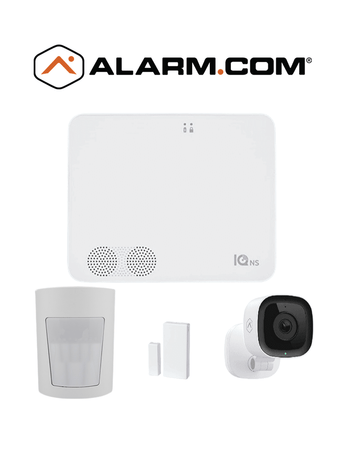 QOLSYS IQ4 NS Video Basico - Paquete que contiene Sistema de Alarma IQ 4 NS", Power G 915 Mhz 1 sensor PIR inalámbrico PGP9914, 1 sensores magnéticos inalámbrico PG9303 y Cámara Interior alarm.com ADCV523