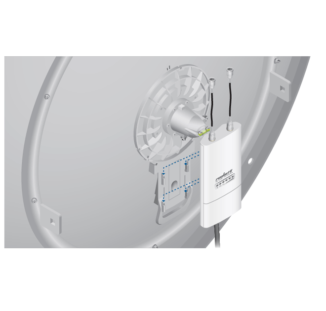 La antena RocketDish® está diseñado de manera robusta y con un diseño mecánico para su uso/aplicación en exteriores.