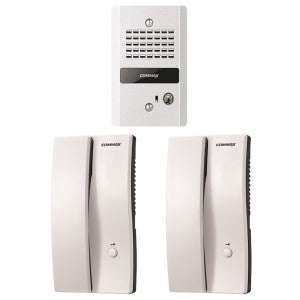 COMMAX DP2SDR2GNPACK - Paquete de audioportero frente de calle con 2 equipos de interfon con conexión directa a 110V y apertura de puerta