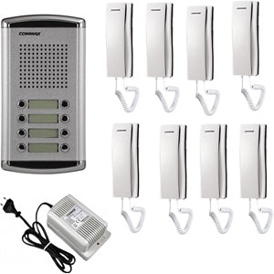 COMMAX DR8AMAP - Kit de frente de calle de audio DR8AM para 8 apartamentos incluye 8 auriculares DPSS y fuente de energía RF1A de 12VDC/ Soporta función de apertura de puerta