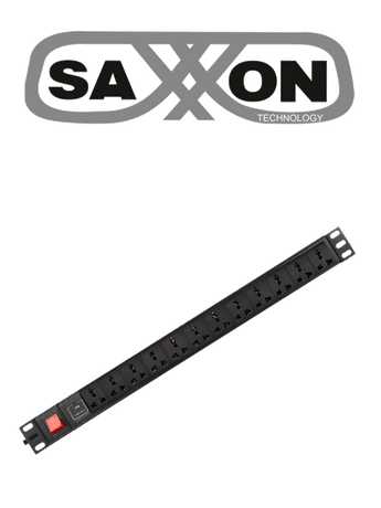 SAXXON SXPDU12P16A- Barra PDU con 12 Contactos Individuales , 16 Amp , 120V , 1UR , Protección contra rayos , Aleación de Aluminio