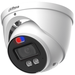 Dahua HAC-ME1239HN-A-PV - Cámara Domo TiOC de 2 Megapixeles/ Disuasion Activa Luz Roja y Azul/ Lente de 3.6 mm/ Super Adapt/ Microfono y Altavoz Integrados/ 40 Metros de Iluminación (IR y Cálida)/ Metalica/ IP67/