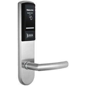 Cerradura Derecha para Hotel / Mfare 13.56 Mhz / 40 a 55 mm Grosor de Puerta / 2 Pestillos / Acero Inoxidable / 224 Eventos.