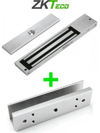 ZKTECO LM200LEDSU - Paquete de contrachapa magnética de 200 Kg a 12 VDC con señal NC que incluye soporte en U para colocación en puertas de vidrio