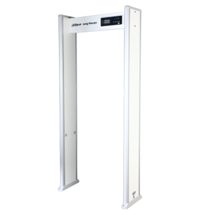 Dahua ISC-D109L Arco detector de metales con 9 zonas de detección, pantalla de 5 dígitos, luces indicadoras y contador de paso. Ofrece alarmas ajustables con 99 tonos y volumen configurable, brindando seguridad y precisión.