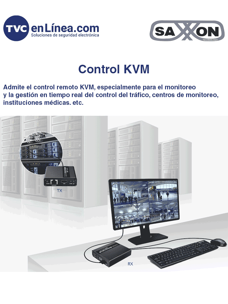 SAXXON LKV223KVM - Kit Extensor KVM de Video HDMI y Puerto USB/ Resolución 4K 40M / 1080P @ 60 Hz/ HDR/ Hasta 70 metros con Cat6/6A/7/ Cero latencia/ Loop HDMI en Transmisor/ Salida de audio/ Función EDID/