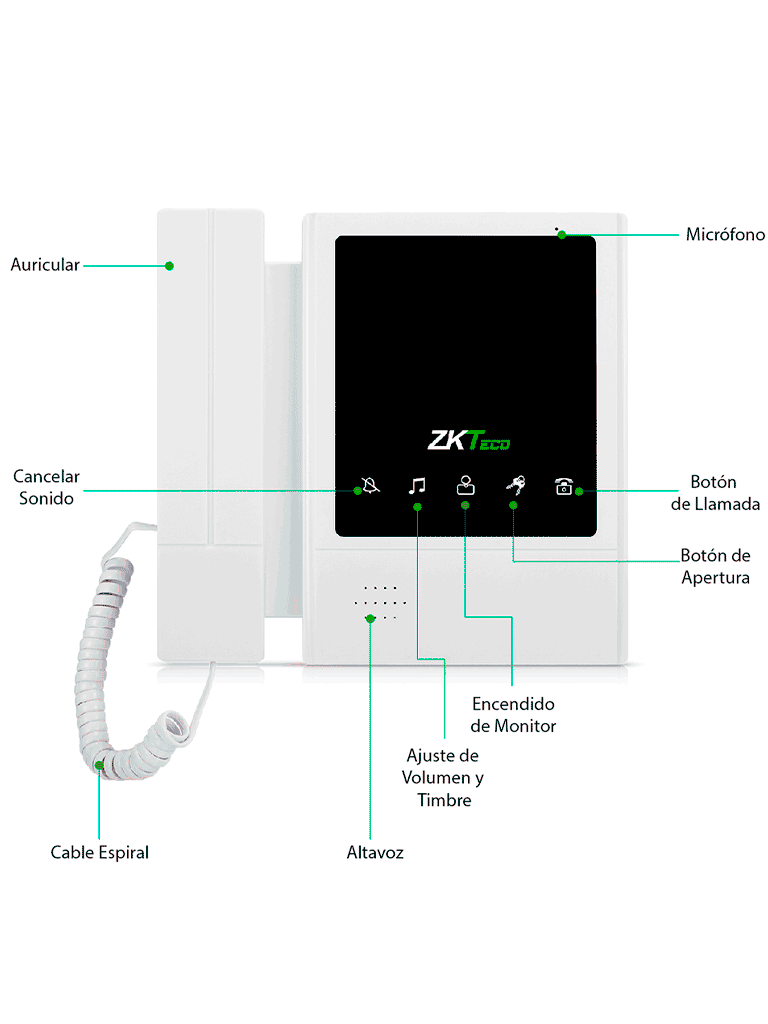 ZKTeco VE08A01PAQ4P - Paquete de Videoportero para 8 Departamentos VE08A01 con 1 Monitor VDPIB4 de 4.3 pulgadas