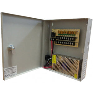 Fuente de poder regulada 12V / 10 Amperes / Distribuidor para 9 camaras / 1.1 A MP Maximo por canal / Certificacion UL.