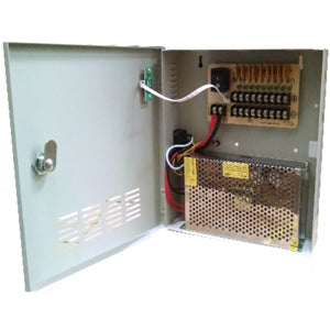 Ésta fuente de alimentación de 110 VAC, le entregará 12 VCD, 20 Amp. de salida para la alimentación de sus cámaras. Cuenta con distribuidor de voltaje para 9 cámaras con protección de resistencias en cada canal y soporte de 2.22 amp por canal. Ideal en lugares donde el flujo de energía es muy cambiante.