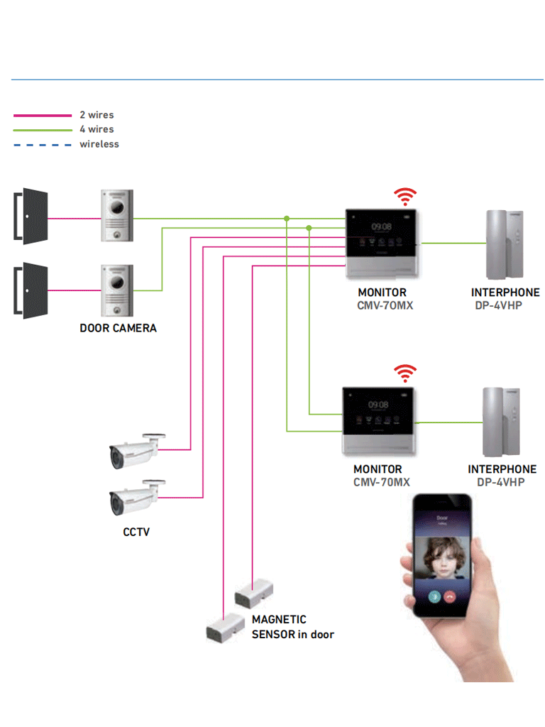 COMMAX CMV70MXP - Paquete de monitor Wifi para videoportero / App Commax Hey Call/ Android&iOS / Conexión a 4 hilos con frente de calle/ Micro SD