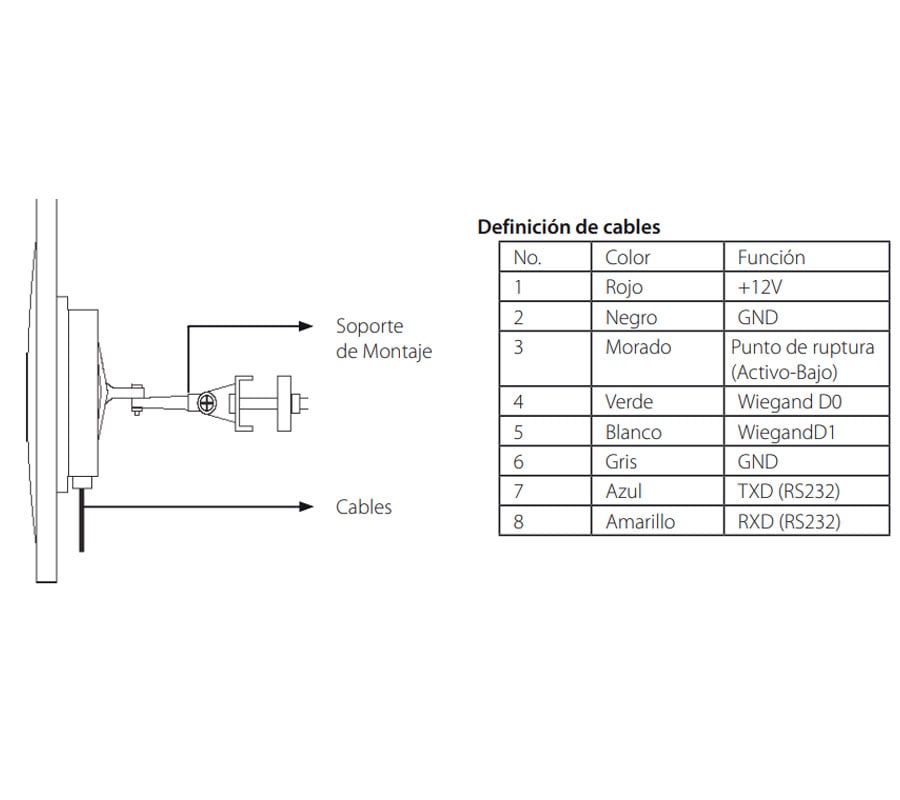 • Wiegand 26-Bits (Puede cambiar a 34-Bits vía software).