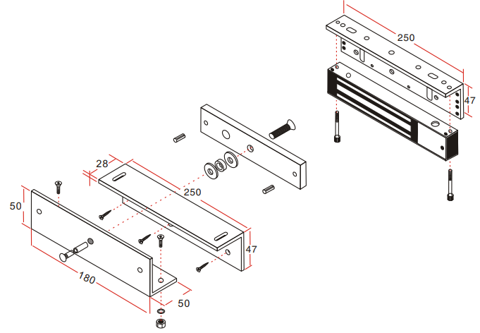 YLI YM350WS - Cerradura Magnética para Control de Acceso / Fuerza de Sujeción de 350 kg (800 lb) / Para puertas de madera, vidrio y metálicas / IP68 para uso exterior e interior