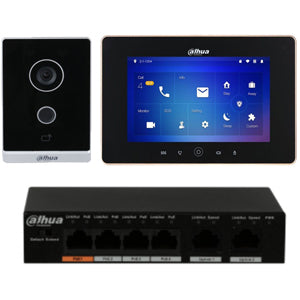 Frente de calle y Monitor 7" WiFi / PoE estándar / Apertura de puerta por tarjeta, monitor o APP / P2P / Incluye switch PoE 802.3af.