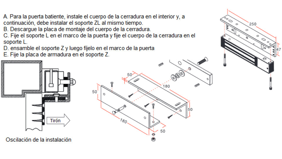 YLI MBK280ZLW - Sopote en ZL para instalacion de cerradura magnetica YM280WS para uso en exteriores