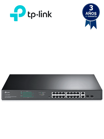 TP-LINK TL-SG1218MPE - Switch JetStream con 16 puertos 10/100/1000Mbps y soporte PoE af/at, además de 2 puertos SFP con una capacidad total de hasta 192W.