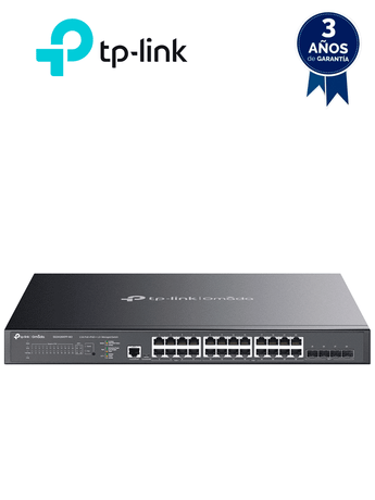 TP-LINK TL-SG3428XMP - Switch L2+ Omada PoE+ con 24 puertos PoE+ 10/100/1000 Mbps, 4 puertos SFP+ 10G y consola RJ45/microUSB, además gestión centralizada Omada/Stand-Alone, soporte Multicast IGMP, QoS y presupuesto PoE 384W, versión 3.0