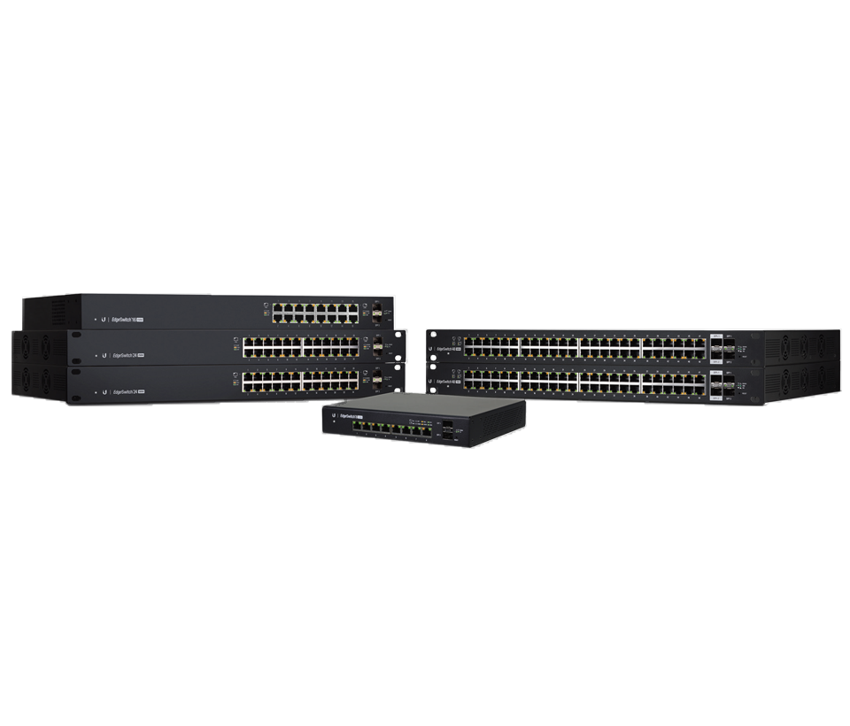La serie de switches EdgeSwitch de Ubiquiti, se encuentran disponibles en 24 8 48 puertos gigabit RJ-45, lo cual permite un rendimiento más robusto y completo, así también soporta PoE+ para un crecimiento inteligente de la red.