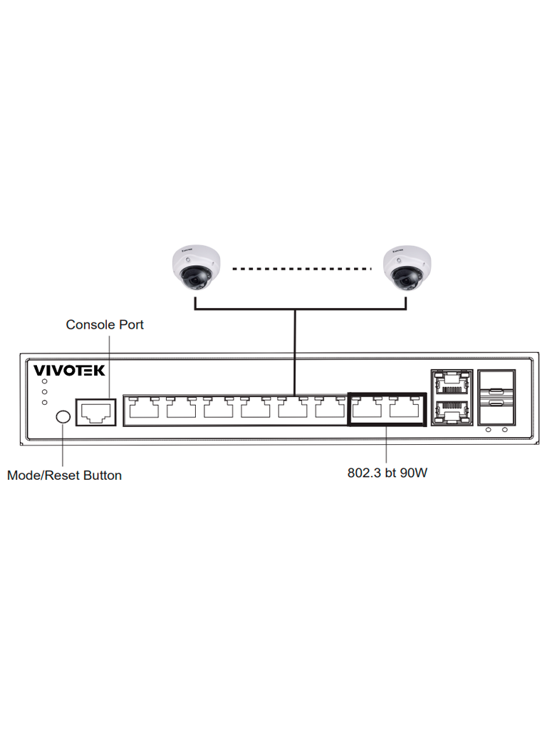 VIVOTEK AW-GEV-108A-130 - Switch Gigabit PoE Administrable con 8 puertos GE, 2 Puertos GE Combo SFP / RJ45, 150W totales, 30W por puerto, compatible con VIVOCAM