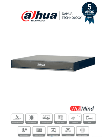 DAHUA DHI-NVR5216-16P-I/L - NVR de 16 Canales 4k/ WizMind/ 16 Puertos PoE/ H.265+/ 4 Canales de Reconocimiento Facial/ 20 Bases de Datos de Rostros/ 2 Bahías de Discos Duros/ Rendimiento de 320 Mbps/ 4&2 E&S de Alarma/