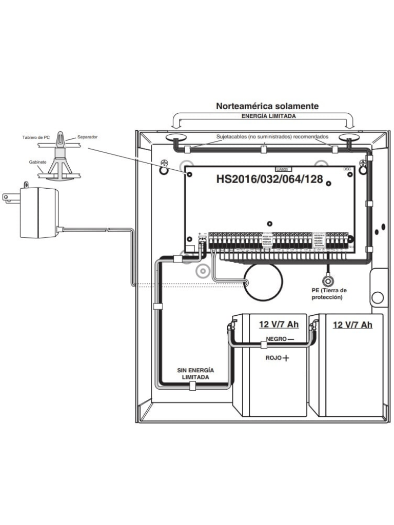 - Zonas en placa 8, zonas soportadas 128 (con expansor de zonas HSM2108)