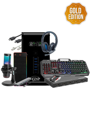 KIT GAMER GOLD UPS de 1500VA / 900W / Mousepad con Cargador Inalámbrico 80x30cm, Negro /Teclado Gaming LED con panel metálico para celular / Mouse Optico Gaming 7 Botones, Negro/