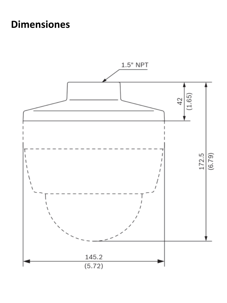 - Dimensiones Φ 145 mm (5,7 pulg.), H = 42 mm (1,7 pulg.).