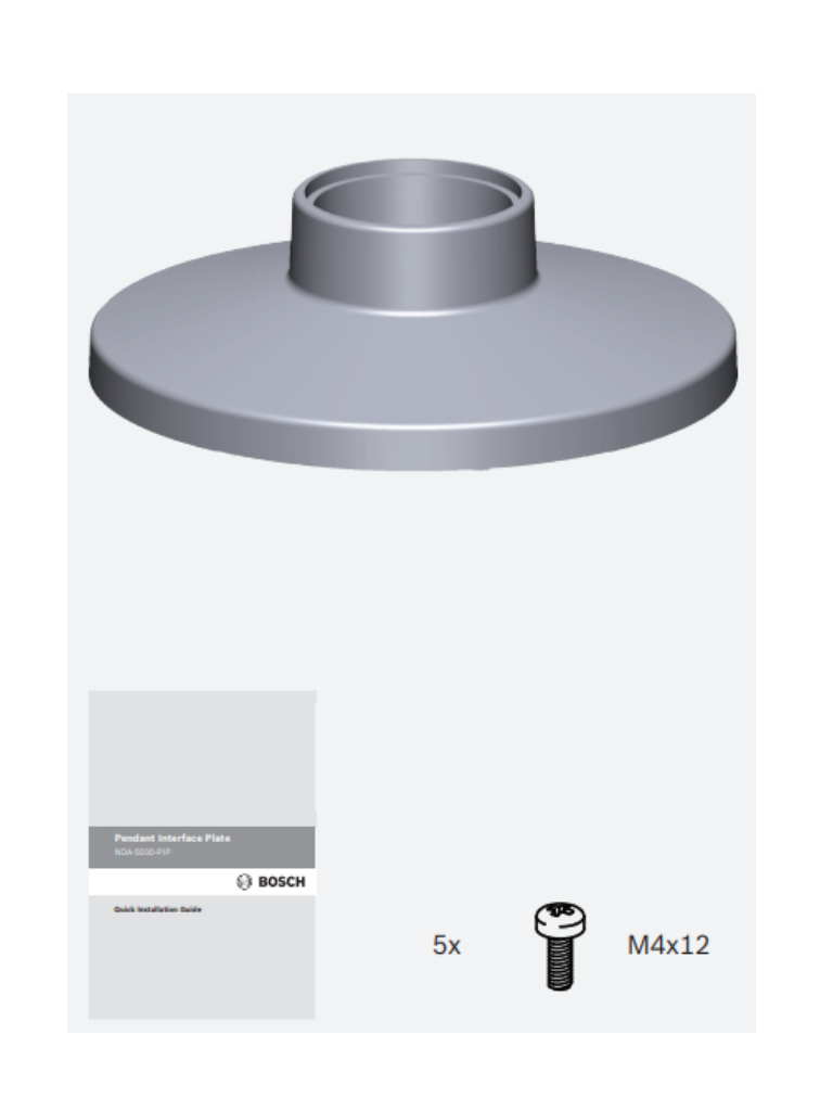 Nota: NDA-5030-PIP Placa interfaz colgante NDE-4/5000 Placa de conexión para exteriores FLEXIDOME 4000i/ 5000i. Número de pedido: NDA-5030-PIP.