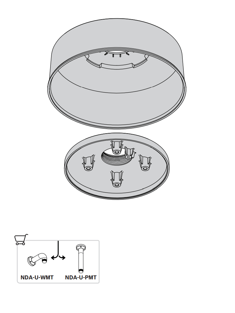 - Permite la instalación de la cámara en un soporte de pared (NDA-U-WMT) o soporte de tubo colgante (NDA-U-PMT)