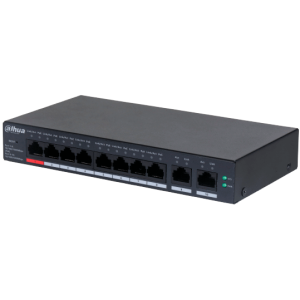 DAHUA DHCS40108GT110 - Switch de 10 Puertos Gigabit / 8 Puertos PoE / 2 Puertos Uplink 10/100/1000/ 110 Watts Totales / Switching 20 Gbps / Tasa de Reenvio de Paquetes 14.88 Mbps / PoE Watchdog / Plataforma DoLynk Care
