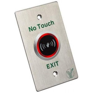 Botón liberador sin contacto con sensor infrarrojo con rango de detección ajustable y apertura de retraso programable de 1 a 25 segundos requiere caja de instalación.