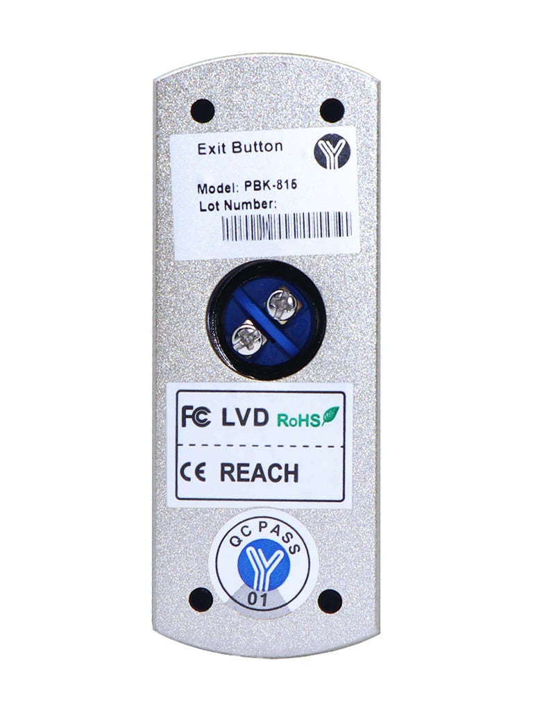 YLI PBK815 - Botón de Salida Mecánico, Carcasa Metálica, Función NO, Sin Caja de Instalación Requerida