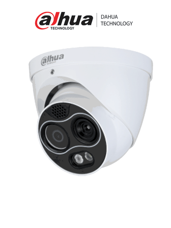 DAHUA TPC-DF1241-B2F2-DW-S8 - Camara IP Dual Termica/ Lente Termico de 2mm (256×192) / Lente Visible de 2mm y 4 Megapixeles/ Eureka/ IA con Detección de Calor, Fumadores, Vehiculos y Personas/ IR de 30 Mts/ IP67/ Alarma de Audio/ MicroSD/ E&S de Alarma/