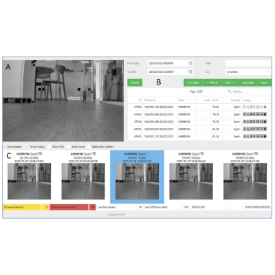 - LPR de vehículos en movimiento (hasta 20 km/h) o detenido (Stop & Go).