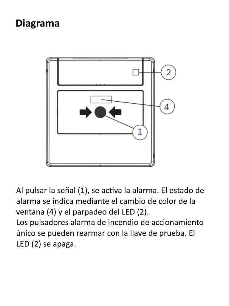 - Activación de la alarma pulsando la señal o rompiendo el cristal.