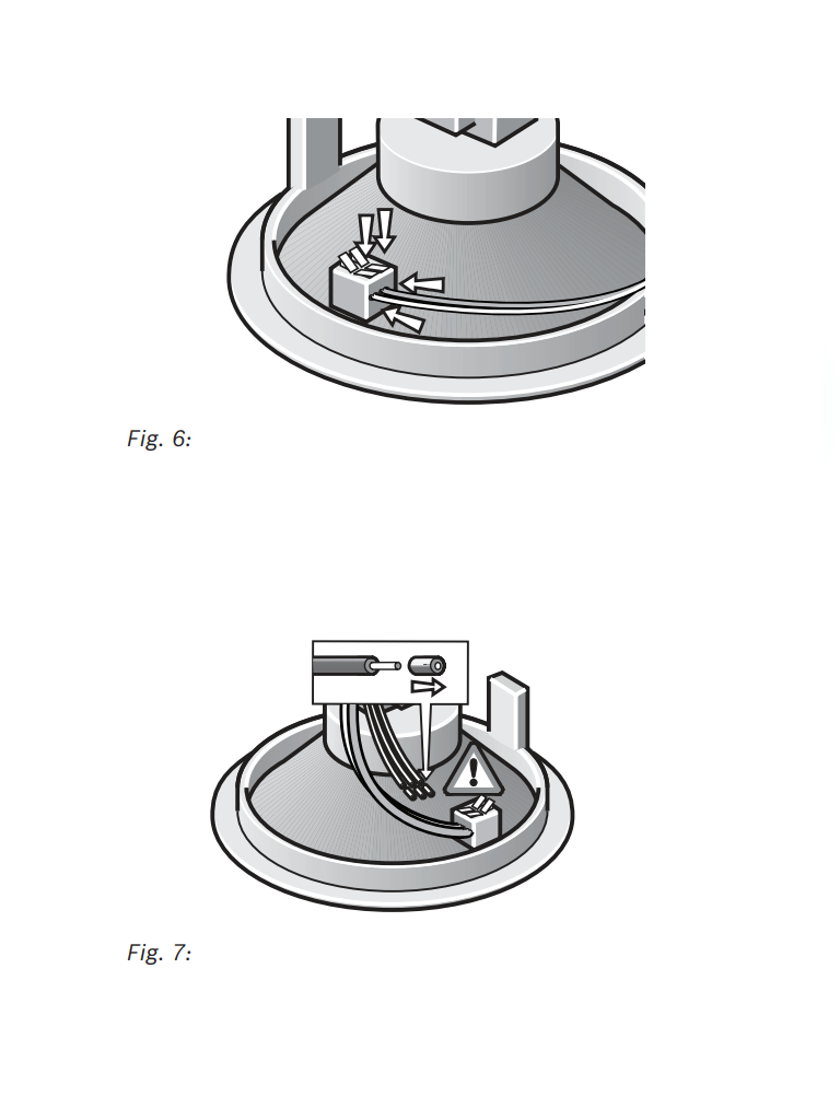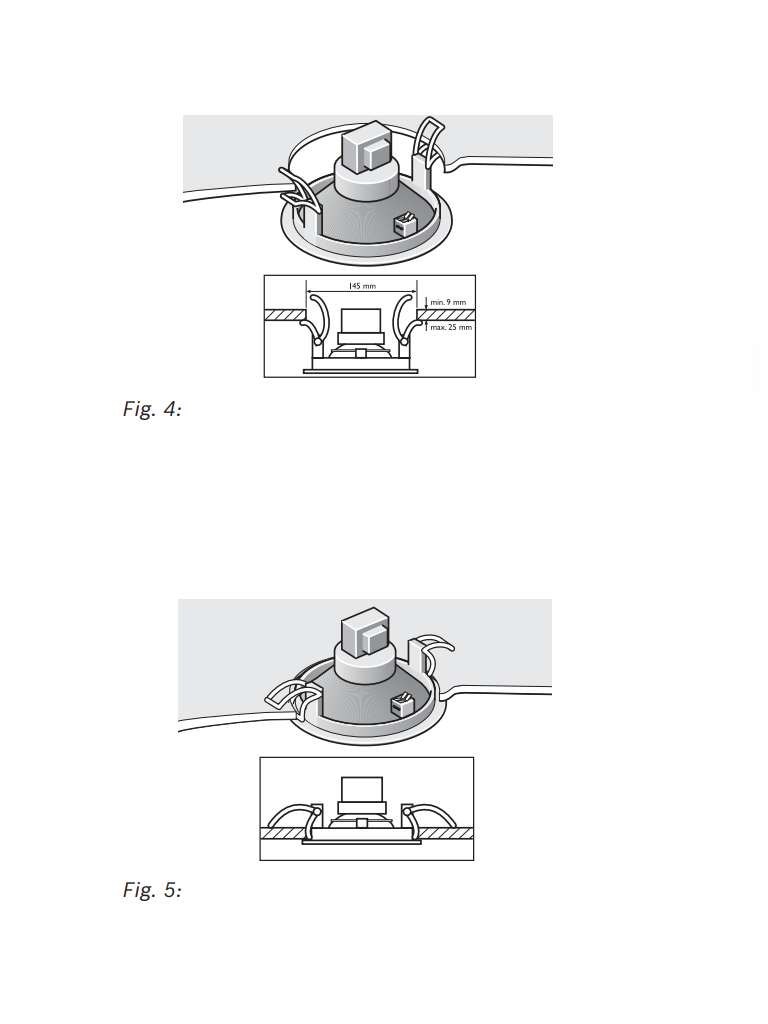 La instalación resulta muy sencilla gracias a las sujeciones integrales que fijan el altavoz de techo en su ranura. Se puede instalar en techos con un grosor de 9 a 25 mm. También se proporciona una plantilla para marcar de forma precisa la ranura en los paneles del techo. El cableado se realiza mediante un bloque de conexión con terminales tipo Push, lo que hace posible la instalación sin necesidad de utilizar ninguna herramienta especial. El transformador se facilita cableado para una potencia nominal de salida de 6 W, pero se puede cambiar fácilmente para otras conexiones mediante los cables con códigos de color y el bloque de terminales.