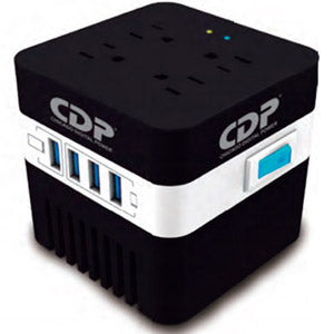 CDP RU-AVR604- Regulador de Voltaje / Supresión de Picos / 600VA / 300W / 4 Puertos USB para Carga de 2.1A Max / 4 Salidas Reguladas / Indicadores Led / Diseño Compacto