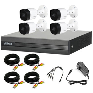 Kit 4 canales 2 Megapixeles/ 4 Camaras B1A21 1080p/ DVR De 4 canales H.265+ 1080p Lite/ 1 Ch IP Adicional/ IR 20 mts / IP67/ Accesorios.