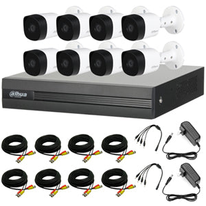 Kit 8 canales 2 megapixeles / 8 Camaras B2A21 1080p metalicas / DVR De 8 canales 1080p Lite / H.265+ / 2 Ch IP adicionales 8+2 / Ir 20M / IP67 / Accesorios.