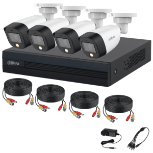 DAHUA FULLCOLORKIT- Kit de 4 canales Full Color de 2 MP. Incluye 4 cámaras HFW1209CN-LED, DVR Cooper-I WizSense, con IA, H.265+, y 4 canales + 1 IP (o hasta 5 canales IP). Búsqueda avanzada de humanos y vehículos, accesorios incluidos