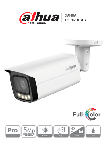 Dahua HAC-HFW2509TU-A-LED - Cámara Bullet Full Color de 5 Megapíxeles/ Lente de 2.8mm/ 111 Grados de Apertura/ 60 Metros de Iluminación/ Micrófono integrado/ WDR real 120dB/ 3D NR/ Super Adapt/ Micrófono integrado/ CVI/CVBS/AHD/TVI/ IP67