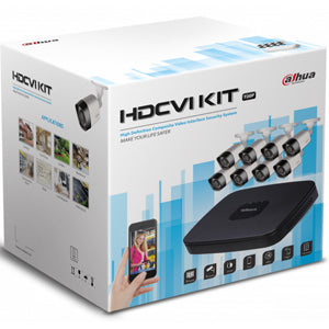 El XVR4108CNS2KIT es un kit de vigilancia conformado por un DVR XVR4108CNS2 y 8 cámaras metálicas HFAW1000RM28S3, las cuales, tienen una calidad de imagen de 720p (1MP). El dvr es pentahíbrido, es decir, soporta 5 tecnologías diferentes (HDCVI, AHD, TVI, CBVS análogo e IP) y al ser un equipo serie 2 nos permite agregar dos cámaras IP de hasta 5 megapixeles, adicional a las 8 que ya nos incluye.