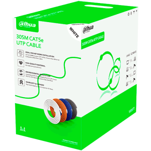 DAHUA PFM922I-5EUN-C -Bobina de cable UTP Cat5e de 305 metros, color blanco, ideal para instalaciones interiores. Conductor de CCA y cubierta de FR-PVC, cumple con la normativa ROHS para una alta calidad y seguridad.