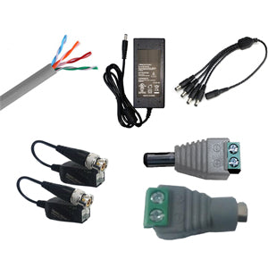 2 Pak CABLE UTP CCA/ CATEGORIA 5E/ COLOR GRIS/ INTERIOR/ 100 MTS/ CERT ISO9001/ UL 444/ ROHS/ ANSI/ TIA/ EIA - 568B + 2 Fuente de poder regulada + gratis divisor de energía de 5 conectores macho / 12V DC / 4.1 A MP / Color negro + 8 Pares de transceptores pasivos 4K HDCVI / TVI / AHD / CVBS / Fácil conexión push / 370M A 720p / 250M A 1080/ 200M a 4MP / 160M a 4K + Bolsa de 10 conectores macho para fuente de poder / Resistente a la oxidacion / Bloque para atornillar positivo y negativo + Bolsa de 10 conectores hembra para fuente de poder / Resistente a la oxidacion / Bloque para atornillar positivo y negativo.
