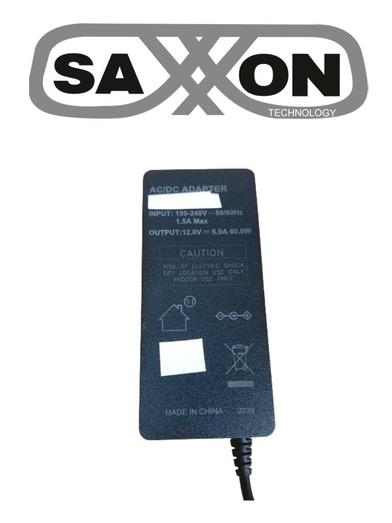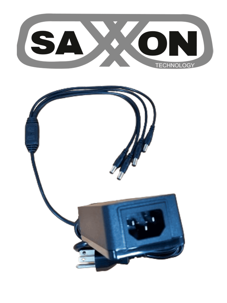SAXXON KA65E1205000Q - Fuente de Poder Regulada / Alimentación 12 Vcc 5 Amper / 4 Conectores Macho / Voltaje de Entrada: 100-240V / Ideal para Cámaras de CCTV , Controles de Acceso y Asistencia