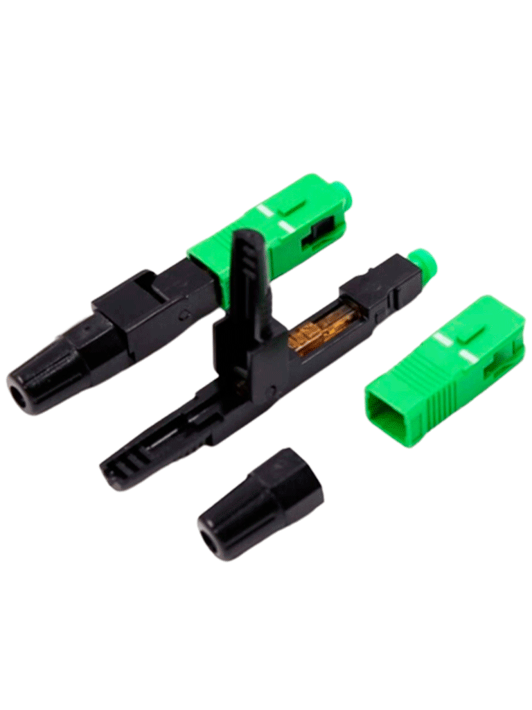 Conector SC pre-pulido SC/APC para fibra óptica monomodo, de rápida instalación, disponible para terminación en cable de 3mm y cable con forro externo de 3mm , reutilizable y alta durabilidad, excelente opción para aplicaciones FTTH