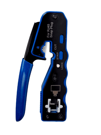 Engarzador RJ45 todo en uno para pelar, engarzar y cortar cables para cables de datos de conductores pares. Ideal para enchufes modulares de 8 posiciones, como conectores CAT5e, CAT6 y CAT6a.