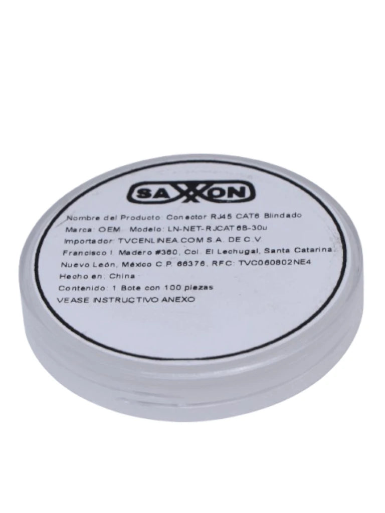 • Bote con 100 plugs RJ45 Cat6 blindados modelo TCE LN-NET-RJCAT6B-30u.
