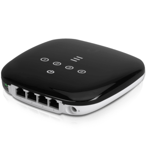 Luciendo un elegante diseño industrial, el UFiber Wi-Fi es un CPE GPON robusto y de alto rendimiento que cuenta con una pantalla LED informativa con 4 puertos Ethernet y Wi-Fi.